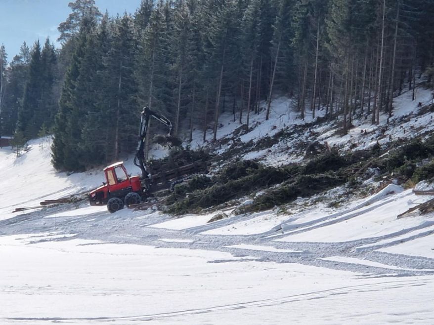 Samtidig pågår et viktig arbeid i skogen mellom hull 7 og 8 og langs høyresiden av hull 8. Mange trær falt i høstens storm. Opprinnelig hadde vi planlagt å ta dem ned i løpet av vinteren, og nå når fairwayene er frosne kan vi gjøre jobben på en skånsom og trygg måte.