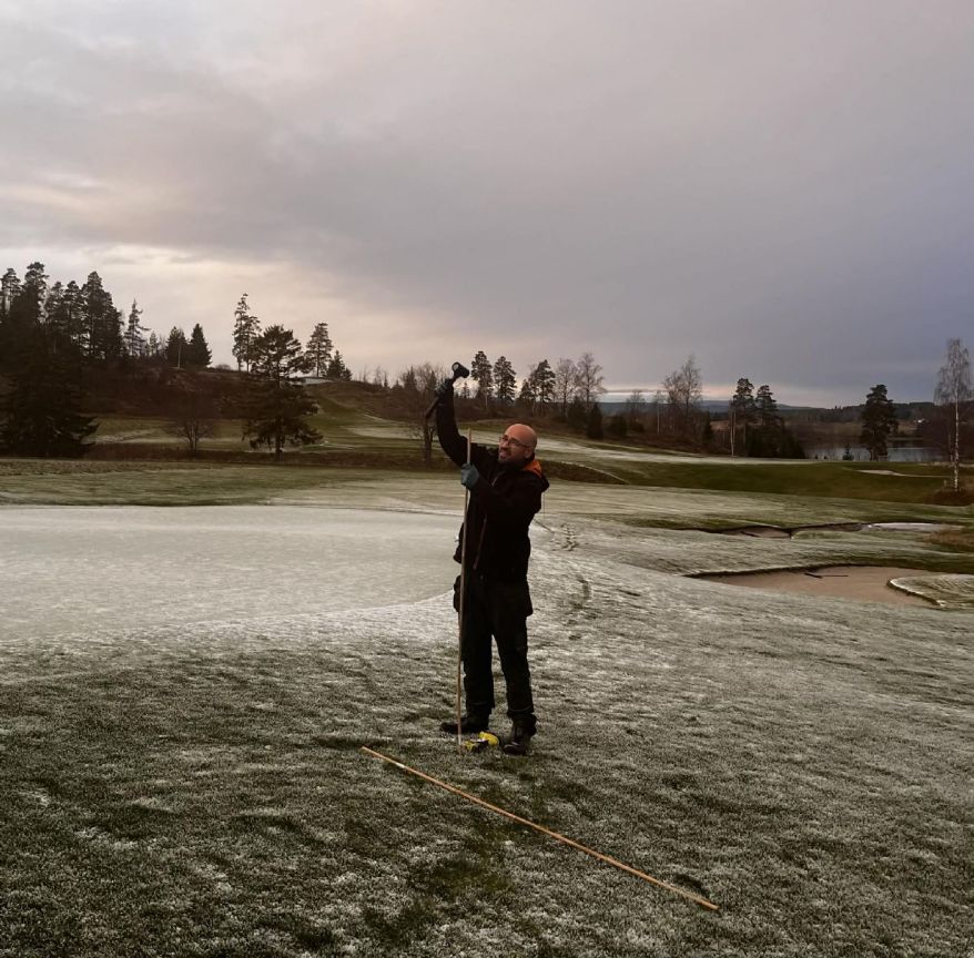 I ukene som har gått har vi sprayet greener og utsatte områder for å beskytte dem mot både sykdom og snø. Vi har satt opp markeringer rundt greener og steder som lett forsvinner i vinterlandskapet, og alt som har best av å stå under tak, ballvaskere, benker, flagg og alle de små detaljene, er tatt inn og lagret trygt før kulda legger seg for alvor.